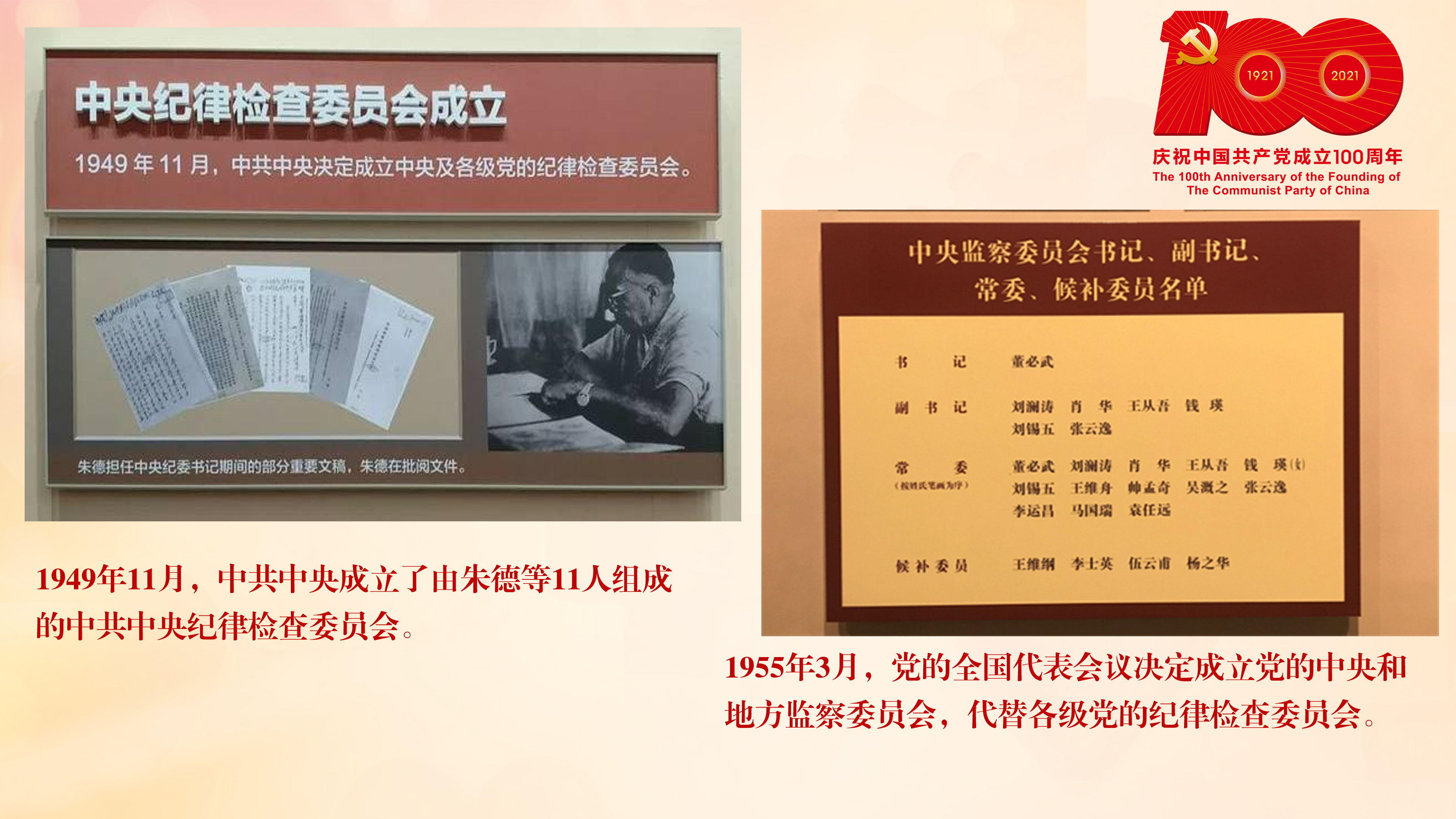 1949年,中华人民共和国成立后,党中央作出《关于成立中央及各级党的纪律检查委员会的决定》,成立了中共中央纪律检查委员会;中央人民政府决定设立政务院人民监察委员会。1954年9月,根据宪法和国务院组织法,政务院改为国务院,政务院人民监察委员会改为国务院监察部。