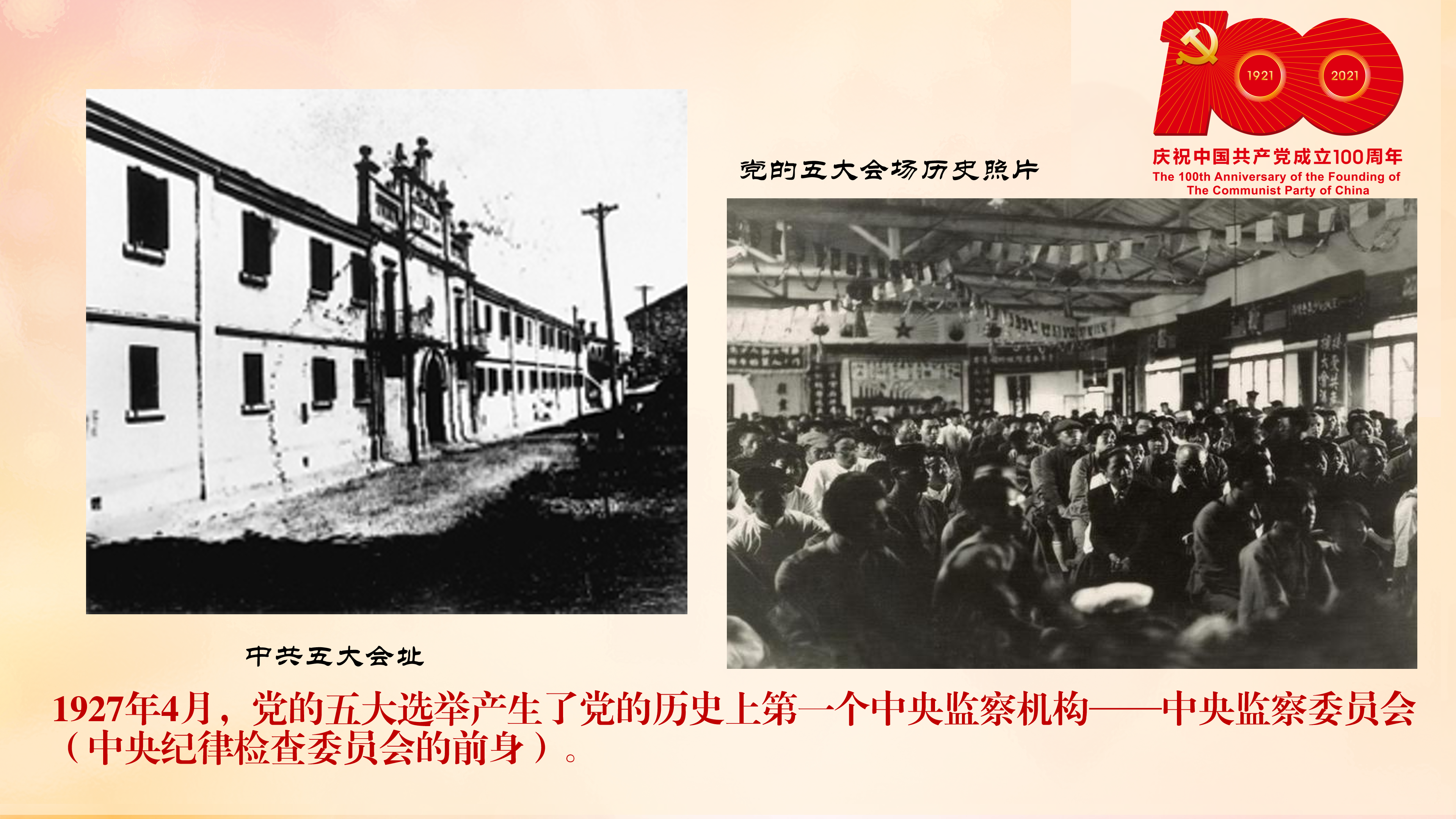 1927年4月,中国共产党第五次全国代表大会设立中央监察委员会,并选举了中央监察委员会委员。这是中央纪律检查委员会的前身。