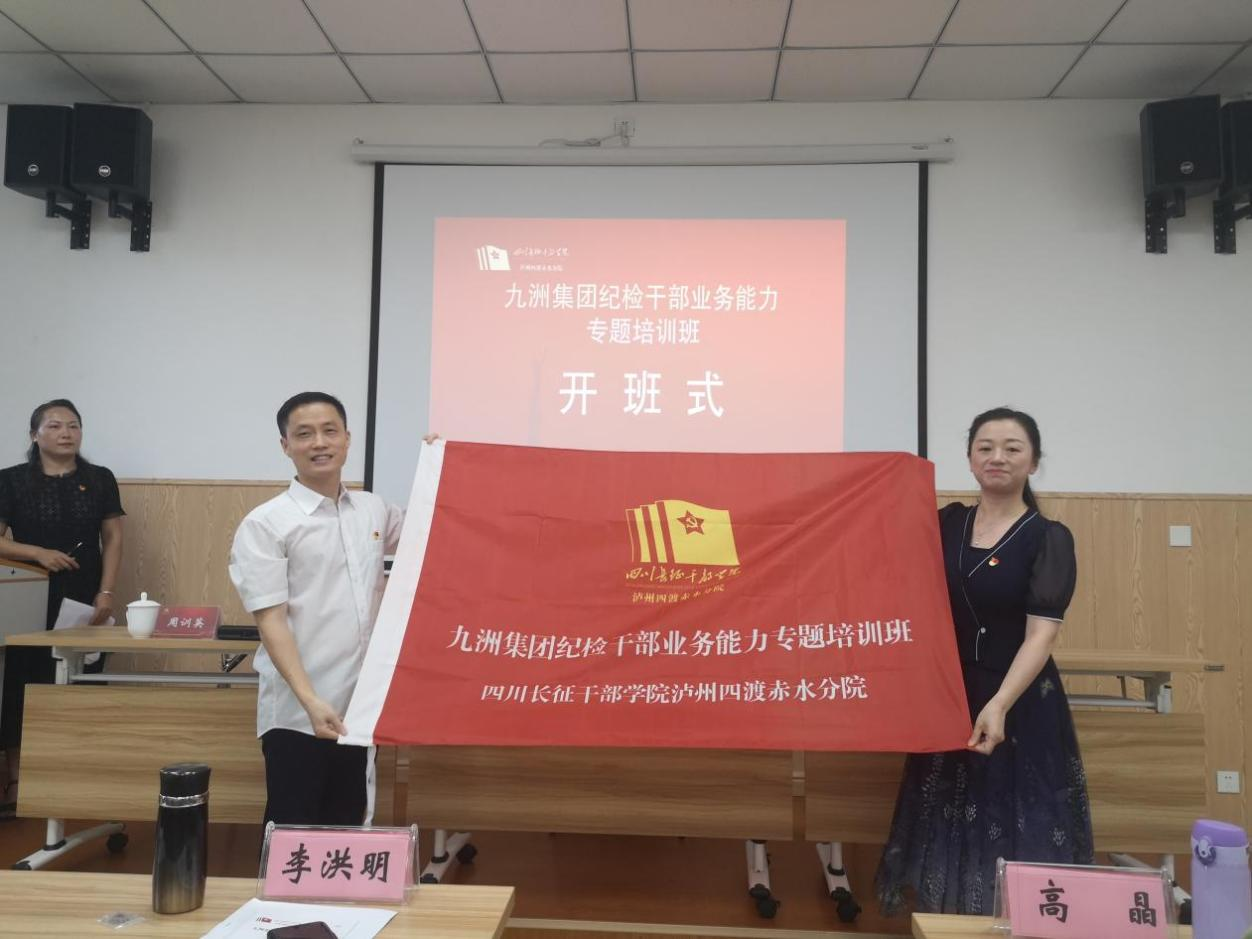 7月6日,九洲集团纪检干部第二阶段培训开班式在泸州召开。四川长征干部学院泸州四渡赤水分院副院长李莹莹致欢迎词,并向培训班授班旗。