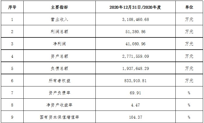 2020年12月31日财务状况、2020年经营成果及国有资本保值增值率