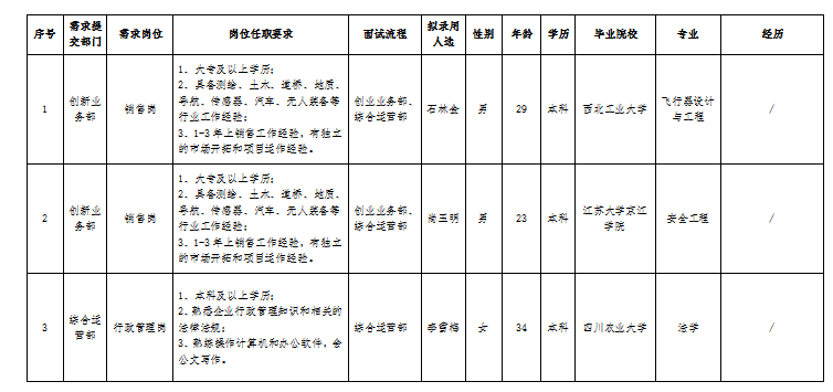 根据上级要求以及《关于九洲集团进一步深化进人公开工作的实施意见》等有关规定,经面试、体检等程序,拟录用石林金等9位同志到重庆九洲星熠导航设备有限公司工作,现予以公示,具体情况如下: