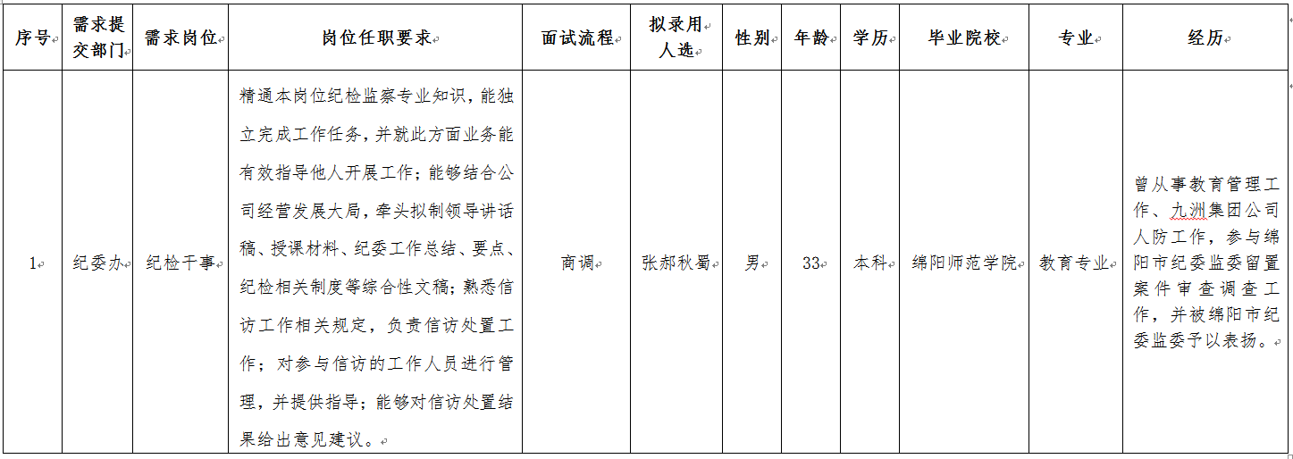 根据上级要求以及《关于九洲集团进一步深化进人公开工作的实施意见》等有关规定,经面试、体检等程序,拟录用张郝秋蜀同志到bat365在线平台九洲投资控股集团有限公司工作,现予以公示,具体情况如下: