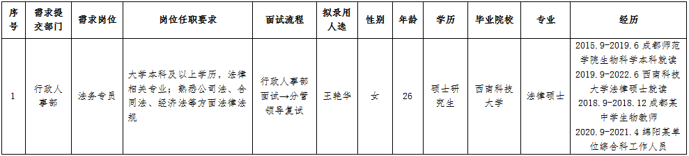 根据上级要求以及《关于九洲集团进一步深化进人公开工作的实施意见》等有关规定,经面试、体检等程序,拟录用王艳华同志到bat365在线平台九洲教育投资管理有限公司工作,现予以公示,具体情况如下: