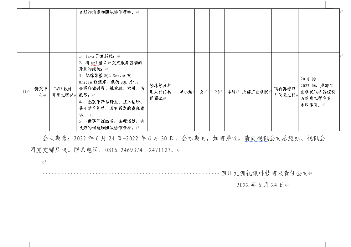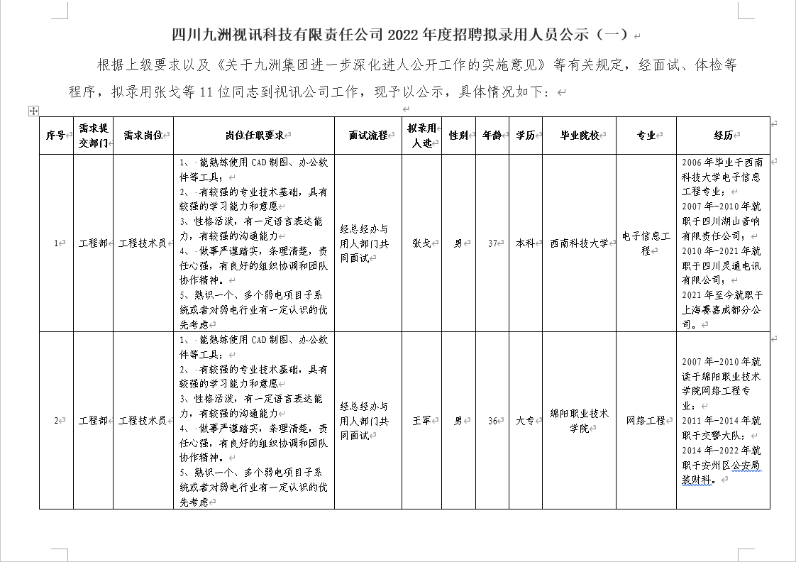 bat365在线平台九洲视讯科技有限责任公司2022年度招聘拟录用人员公示(一)