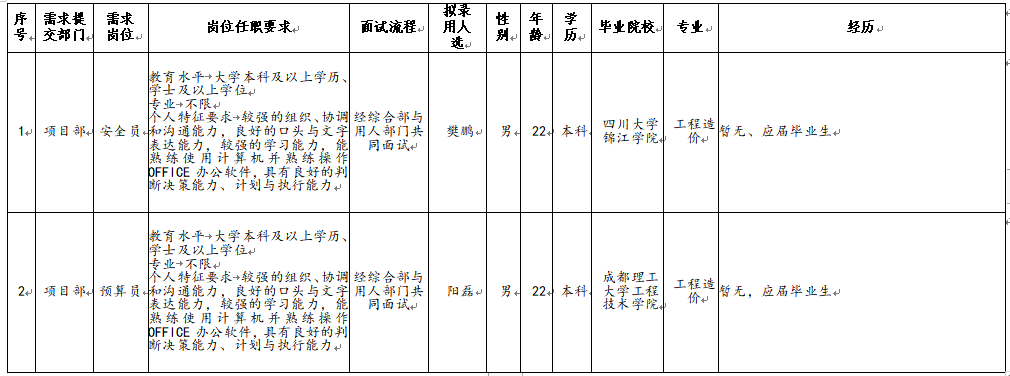 根据上级要求以及《关于九洲集团进一步深化进人公开工作的实施意见》等有关规定,经面试、体检等程序,拟录用樊鹏等两名同志到bat365在线平台九洲建筑工程有限责任公司工作,现予以公示,具体情况如下:
