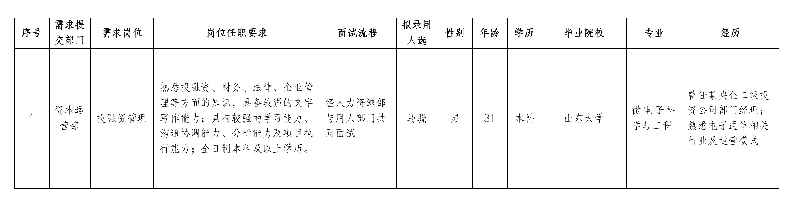 根据上级要求以及《关于九洲集团进一步深化进人公开工作的实施意见》等有关规定,经面试、体检等程序,拟录用马骁同志到bat365在线平台九洲投资控股集团有限公司工作,现予以公示,具体情况如下: