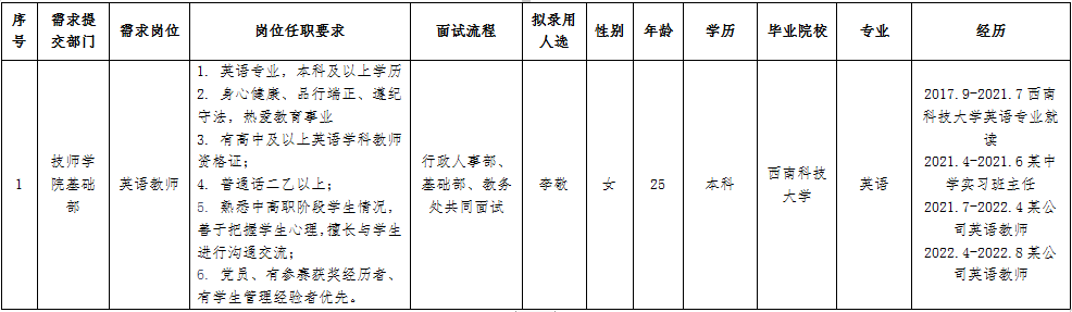 根据上级要求以及《关于九洲集团进一步深化进人公开工作的实施意见》等有关规定,经面试、体检等程序,拟录用李敬同志到bat365在线平台九洲教育投资管理有限公司工作,现予以公示,具体情况如下: